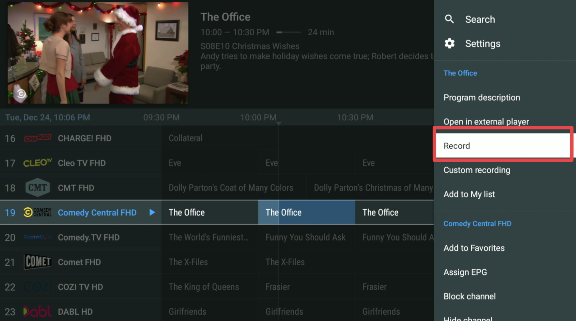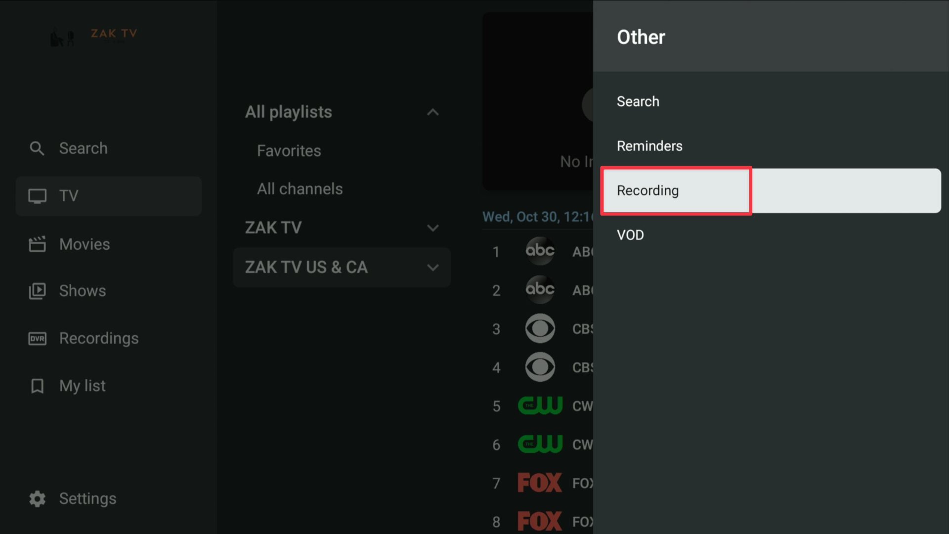 - Check the recordings tab in TiviMate to confirm the recording is saved.