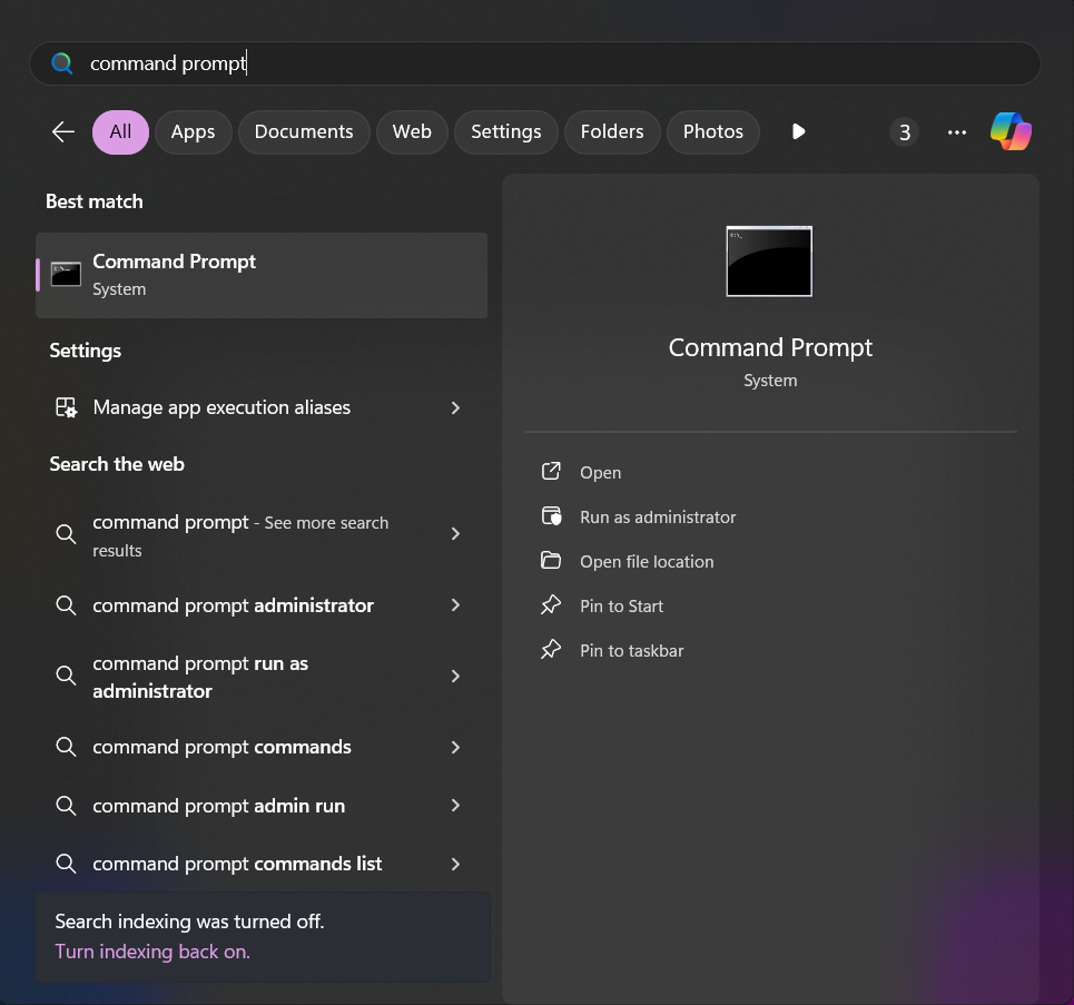 Close settings and open CMD (Command Prompt) from the taskbar.