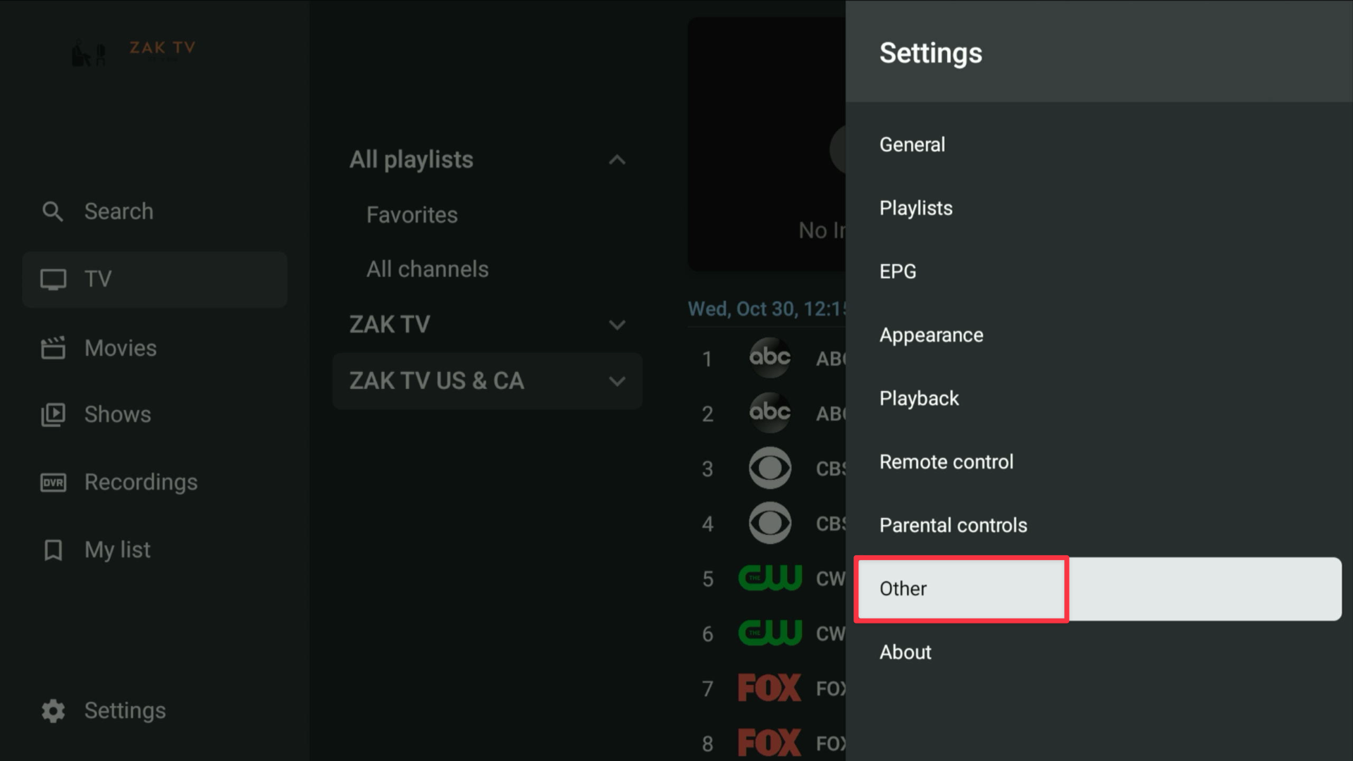 Now, go to your Firestick or the device with TiviMate installed, and navigate to Settings.