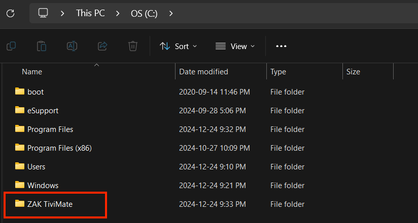 Create a new folder: right-click and select New, then Folder. Name it whatever you’d like. In this example, I’ve named the folder ZAK TiviMate.