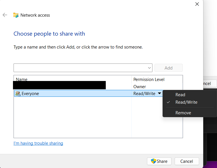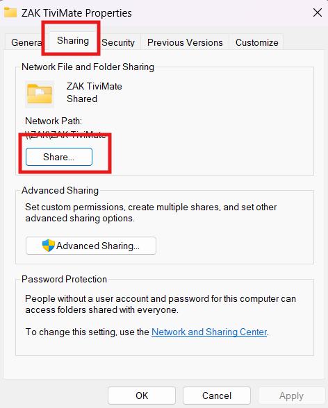 Right-click the folder and select Properties. On the top, click the Sharing tab (beside the General tab).